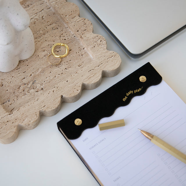 Curved Daily Notes Pad from Papier HQ (black, gold-edged pages)