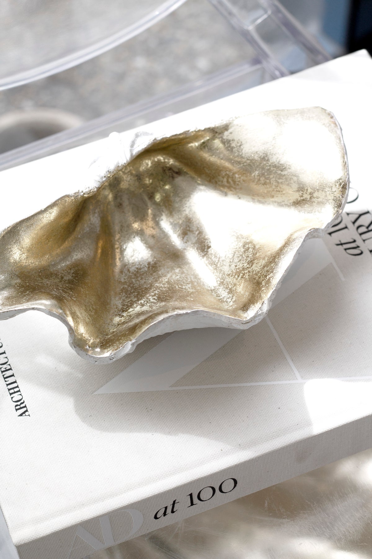 Champagne Clam Shell Decorative Bowl – White Resin (3 Sizes)