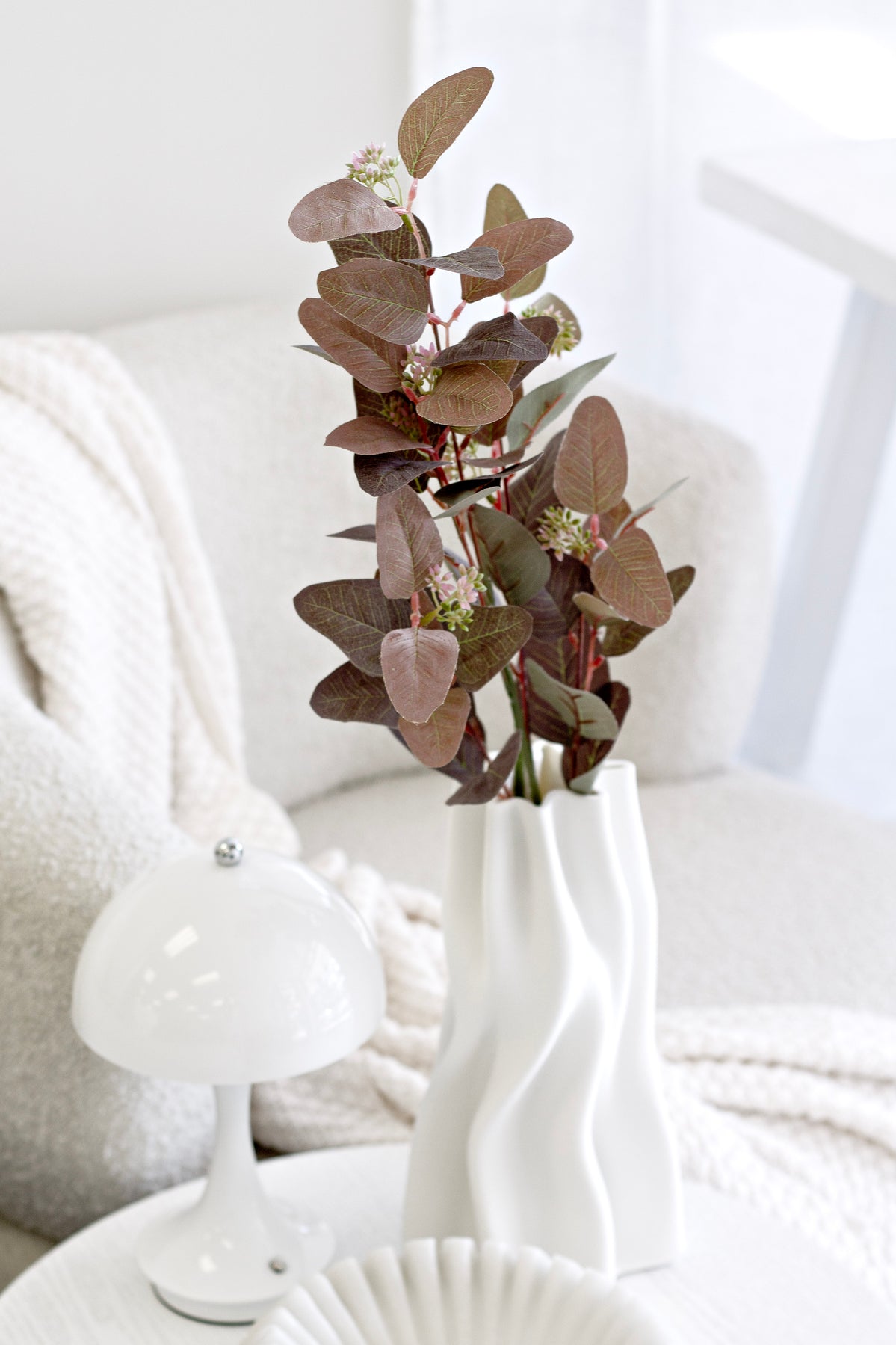 Coffee table styling set: 3D Printed Ribbed Ceramic Vase + Gunni Eucalyptus Stem + Our Spaces (NZ interiors)