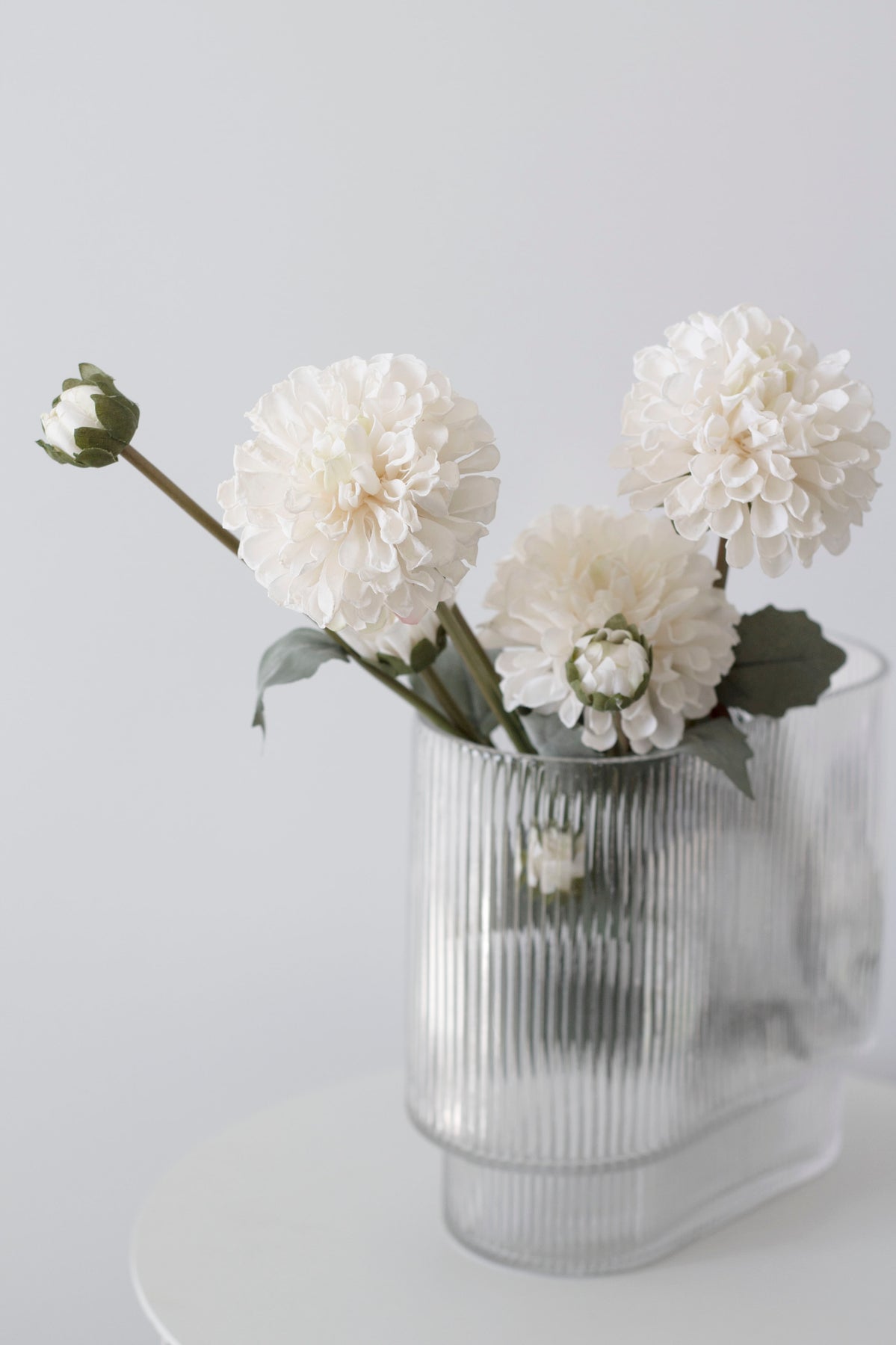Pompom Spray White, Set of 4 Stems (59cm): tiny white pompom blooms that look incredible grouped in a slim vase for a cloud-like effect.