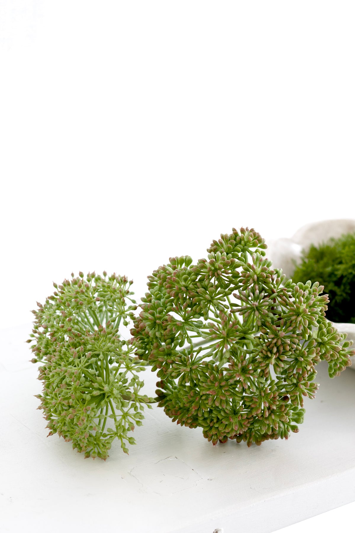 Faux Sedum Spray, Textural Greenery Stem (58cm): clustered sedum heads that bring earthy, tonal texture, and look beautiful with travertine and stone.