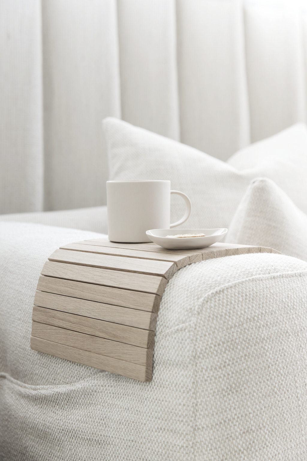 Arm Chair Side Rest – a perfectly simple solve for the remote + coffee combo.